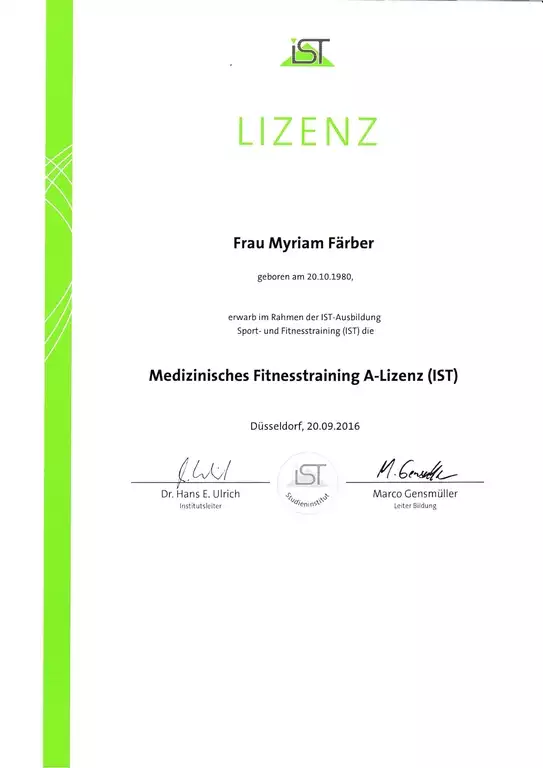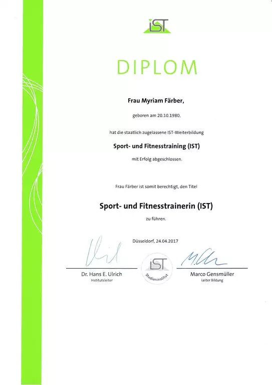 2015-2018 Dipl. Sport- und Fitnesstrainerin (IST)